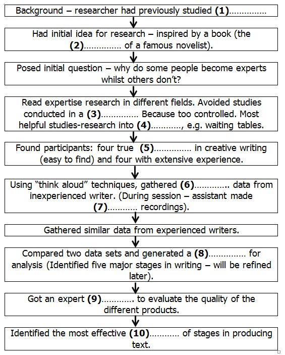 Complete the flow chart below. Write NO MORE THAN TWO WORDS for each answer. EXPERTISE IN CREATIVE WRITING